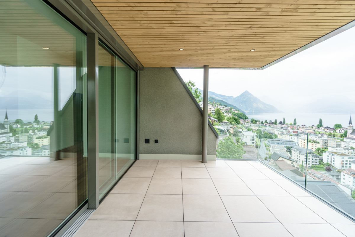 Das Gebäude umfasst drei Geschosswohnungen, die über das Dachgeschoss erschlossen werden.