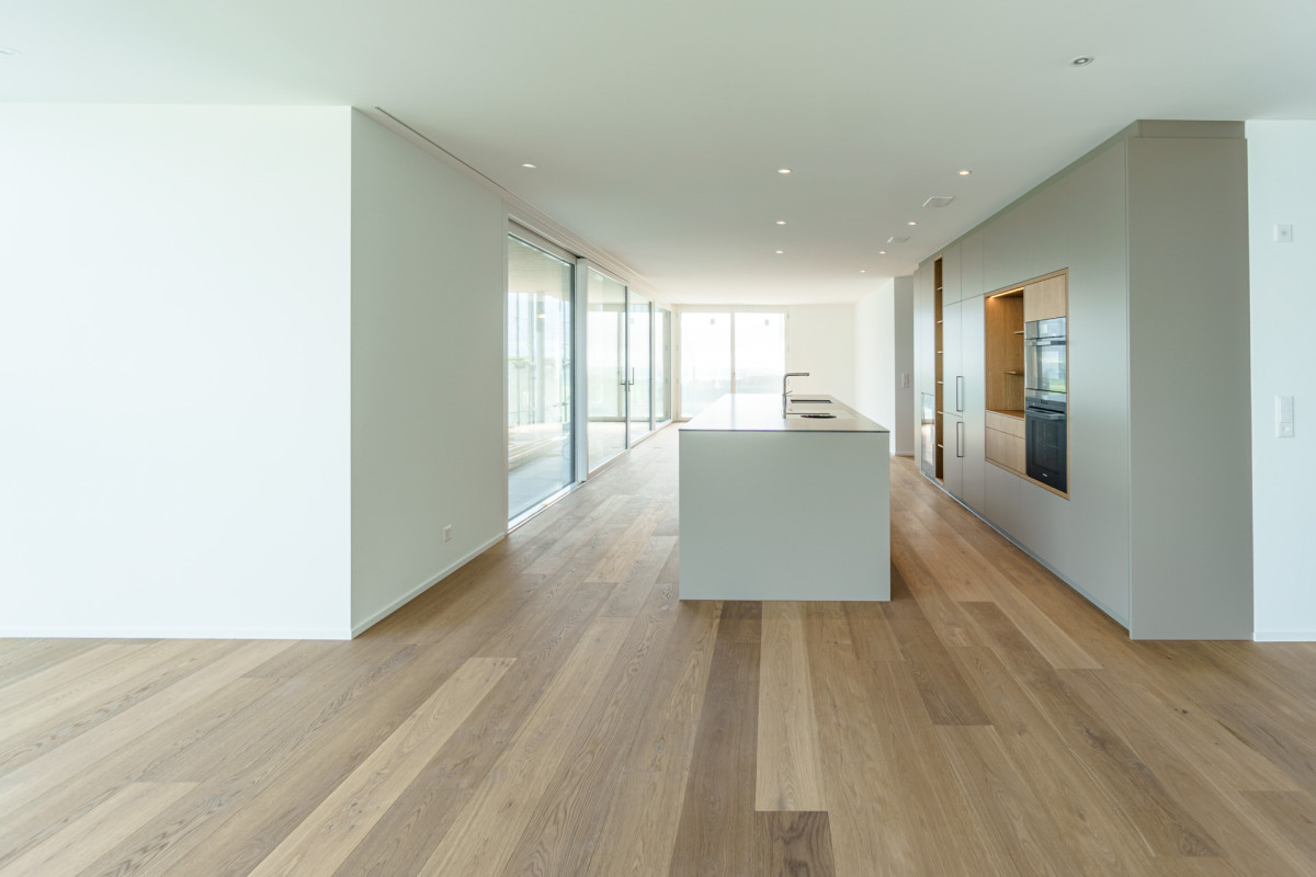 Das Gebäude umfasst drei Geschosswohnungen, die über das Dachgeschoss erschlossen werden.